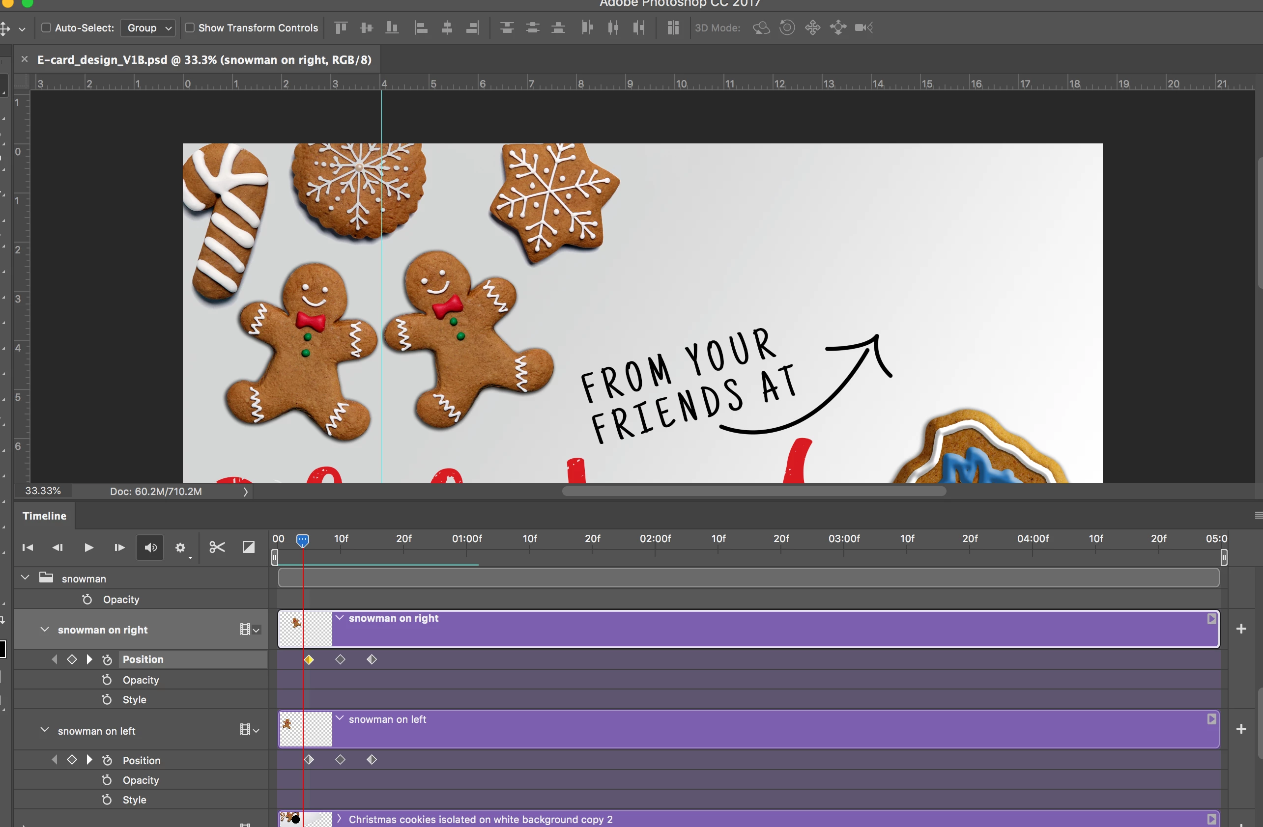 i am making a company animated ecard. i made the below. I have everything in its own layer and i need to make the ginger man dance ( i wanted to make them rock form left to right, as in one goes left one goes right, and the comeback to meet at the position they are now in a looping gif.