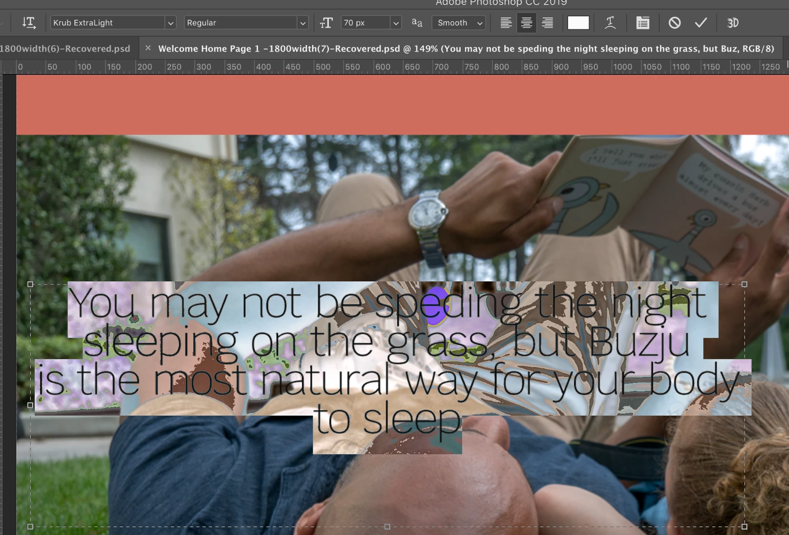 Help. I built a PSD document in 1800px width with 72 pixels/inch. When the font is on the website it shows the same pixels as the PSD document (see below) but as you can see the size in relation to the image, look how much farther to the right the text is on the website. Here is the PSD you can see the 70px.
