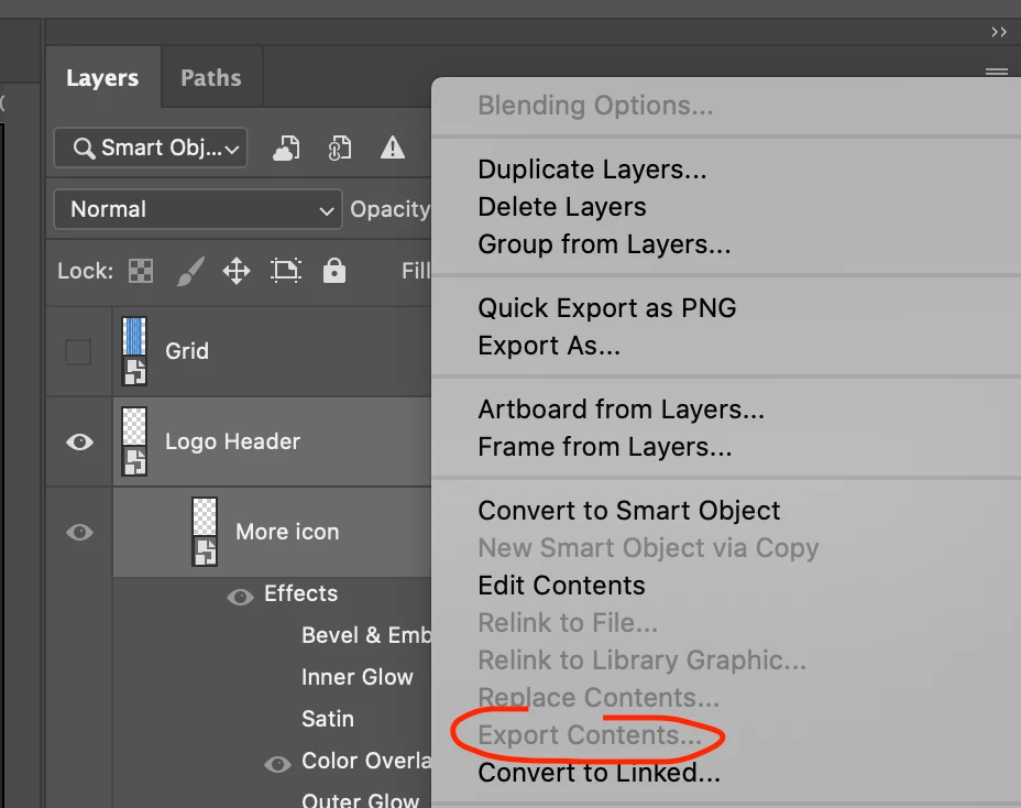 How to export contents from all smart objects?