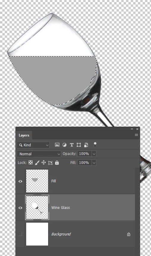 I've found an empty wine glass and made a selection and removed the background. You can see the transparency around it.