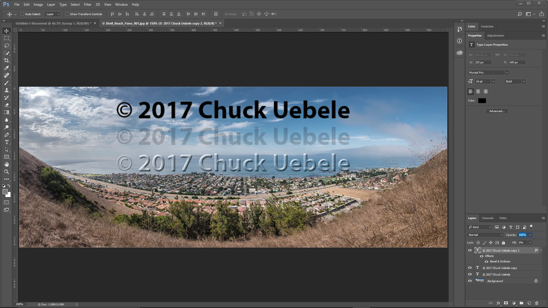 Bottom one is the black text again, but the fill opacity is set to 0, and a bevel and emboss has been applied, so all you see is that effect.
