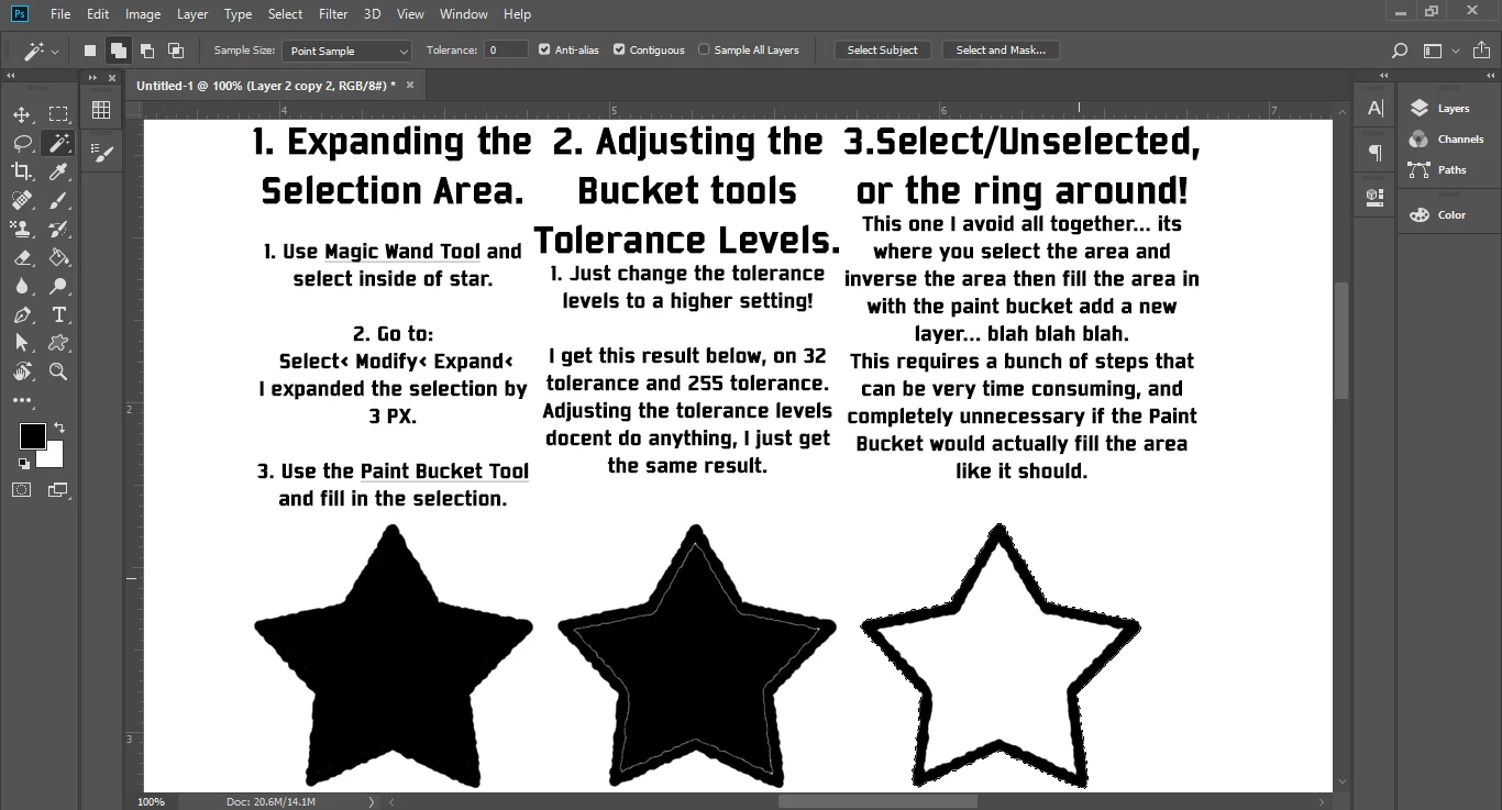 I love Photoshop, its one of my favorite art programs, but I feel like if this little travel sized IOS art program can do this, then Photoshop should be more then capable of this too. Please if you know how to fix this "Filling in the area WITH ONLY the Bucket Tool, IN ONE CLICK" problem please.... PLEASE share your wisdom and let me know. This is my biggest and only complaint with Photoshop and fixing this/know this would make my day!