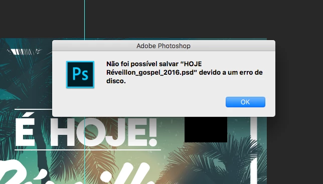 Alguém sabe resolver este problema? o Photoshop não está salvando e aparece esse erro: Não foi possível salvar "nome do arquivo" devido a um erro de disco.