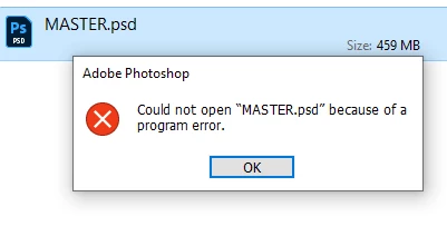 Photoshop 2020 : Could NOT Open File because of a Program Error
