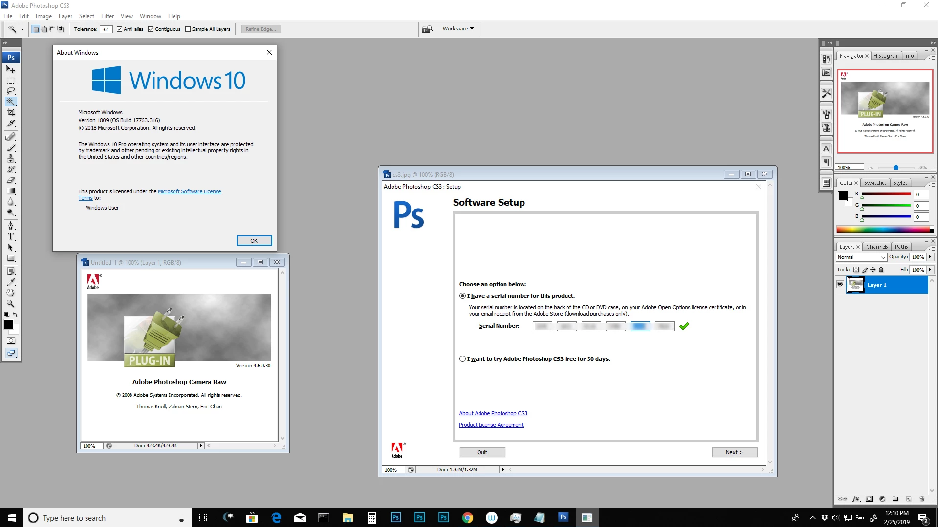 I just reinstalled Photoshop CS3 for you to see If I still could. When I installed it the installer did not require a serial number but wanted the machine rebooted. When I started CS3 I was requested toe put in the serial Adobe Had given me. I did and it was accepted with a green check mark the next thing that happened was failure to communicate with an activation server. They where taken down. So I click continue and then click never try to register. I shut down CS3 installed then ran the CS3 Update then installed Camera RAW 4.6. CS3 is a 32Bit application while it will run it can not utilize all machine resources available so its performance will suffer. It is not something you would want on Windows 10 and as CS3 is a 32Bit application it will not run in the near future and most liken not on a modern mac today.