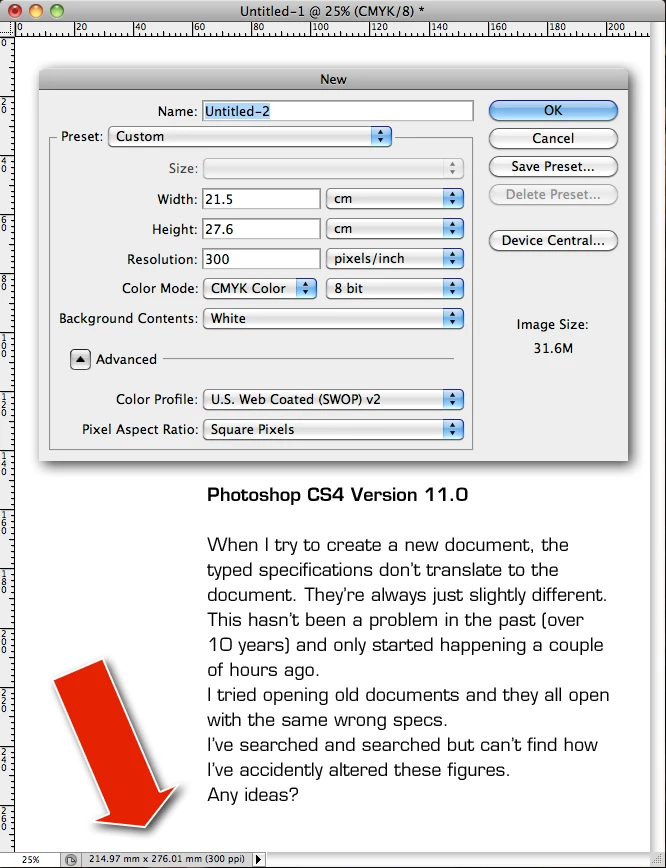 I tried opening old documents and their specs have changed too.