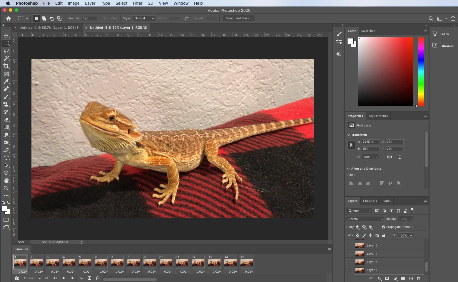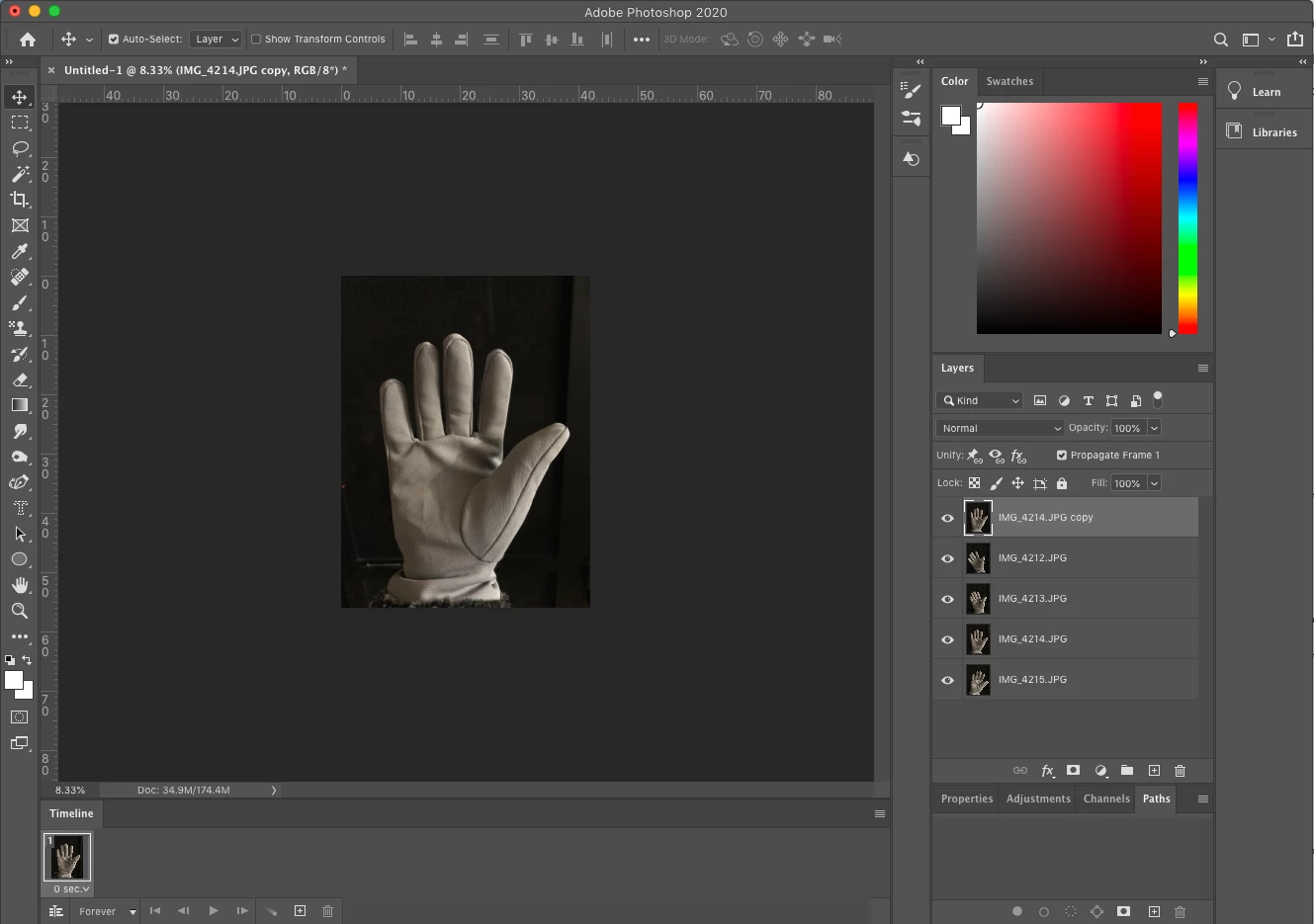 - If it is not already open, click on Window > Timeline to open the Timeline panel