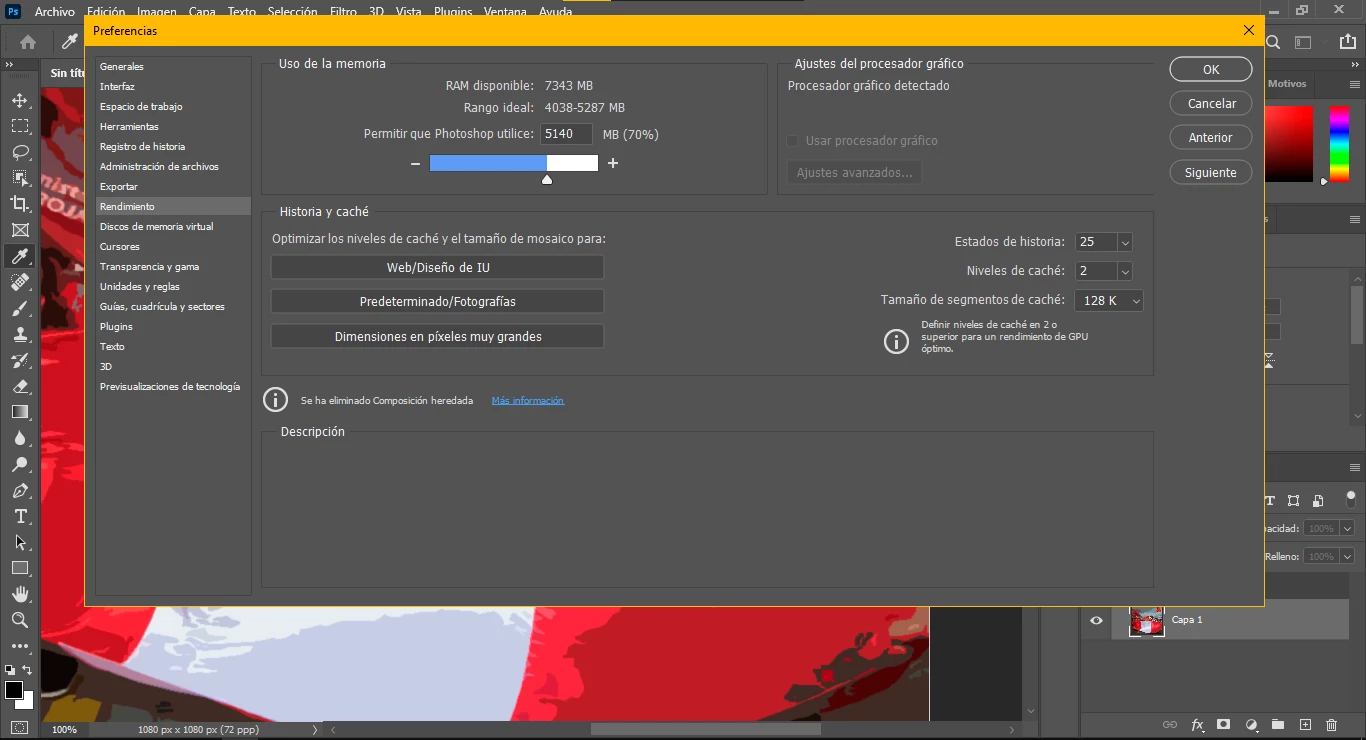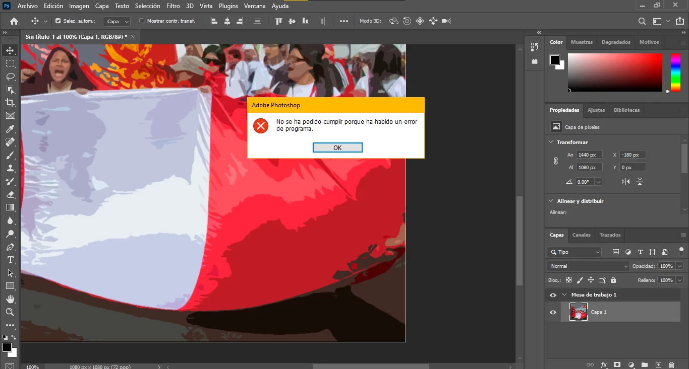 Mi Photoshop funciona en todo momento, para abrir imágenes, guardar, editar, etc, pero me salta el aviso de "no se ha podido cumplir porque ha habido un error de programa" cuando utilizo la herramienta Mano y muevo la vista de mi mesa de trabajo.