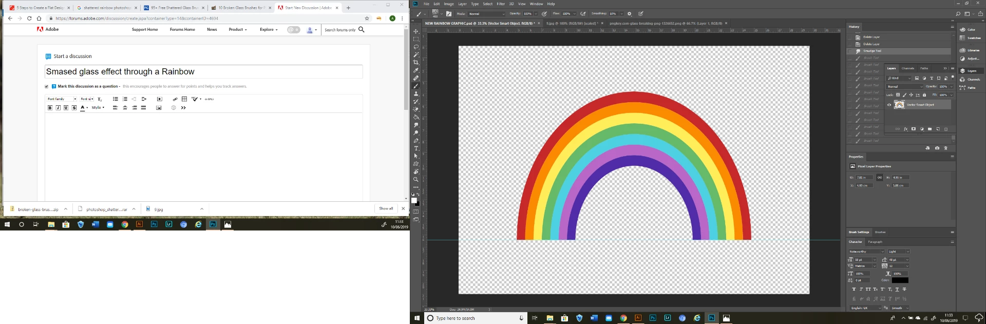 I wanted to create an effect where someone has blasted through the rainbow from the bottom and broken it in half like shattered glass. Please help.