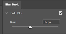 In the newest version of Photoshop, the blur gallery field blur is missing the pin adjustments options previous version had. The dial was outside of the blur pin area.
