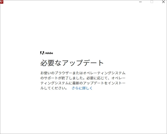 「必要なアップデート お使いのブラウザーまたはオペレーティングシステムのサポートが終了しました。必要に応じて、オペレーティングシステムに最新のアップデートをインストールしてください。」