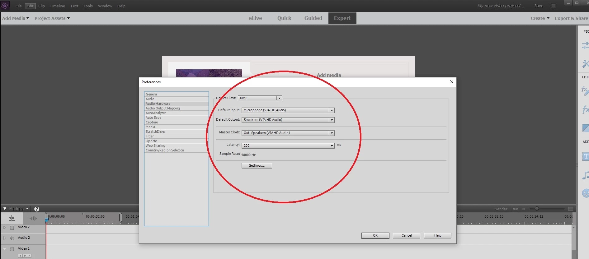 No sound in Premiere Elements 15 after Windows Update