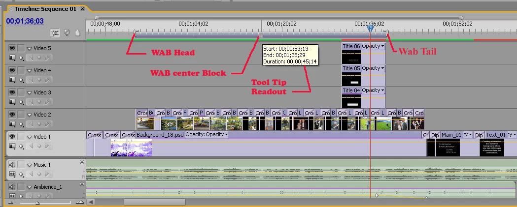 We get a lot of questions on the WAB (the Work Area Bar) in all versions of Premiere. Many of those questions come when someone has accidentally reset the WAB, and cannot find out why parts of their Timeline are not Rendering, or maybe Exporting. Though there are some subtle differences between versions, it basically works the same way.