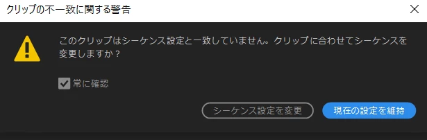 「このクリップはシーケンス設定と一致していません」という表示の意味