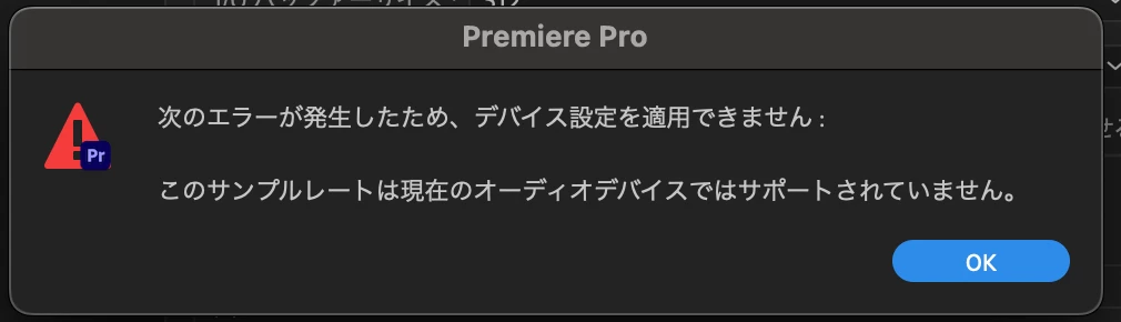 (48000しか選択できず、サンプルレートに合わせるはチェックを入れても1枚目のエラーダイアログが出るだけで変化なし)