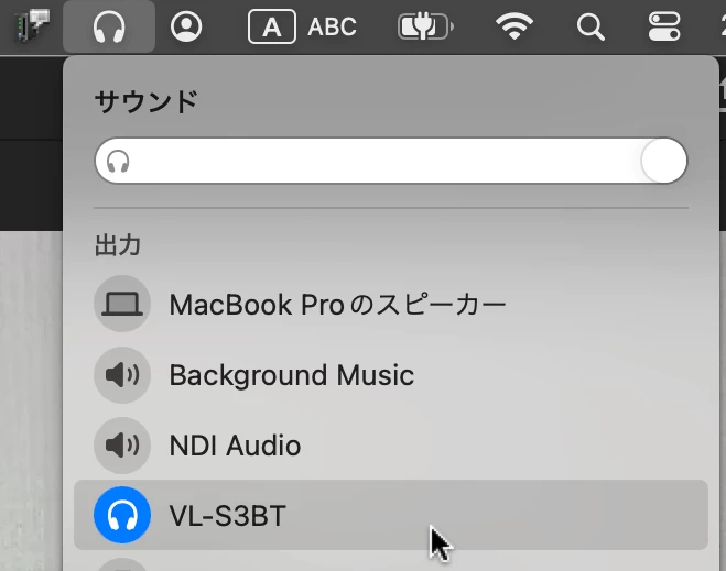 別の設定方法として、macOSの音声がBluetooth機器から出るようにしたうえで、デフォルト出力を「システムデフォルト-(Bluetooth機器の名称)-」にしていただくと、いかがでしょうか。