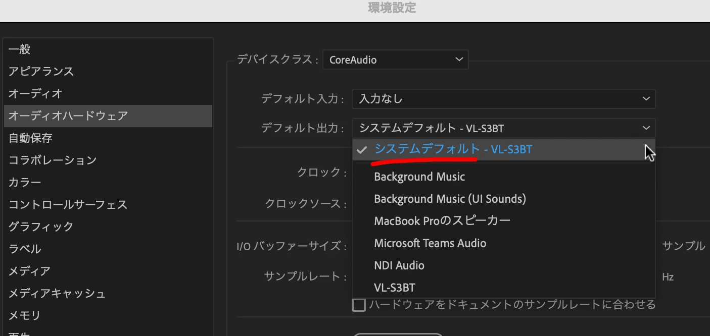 そのようなわけで、Premiere Proのボイスオーバーなど録音機能を使用しない場合には、原則としてデフォルト入力は「入力なし」に設定することをお勧めしております。