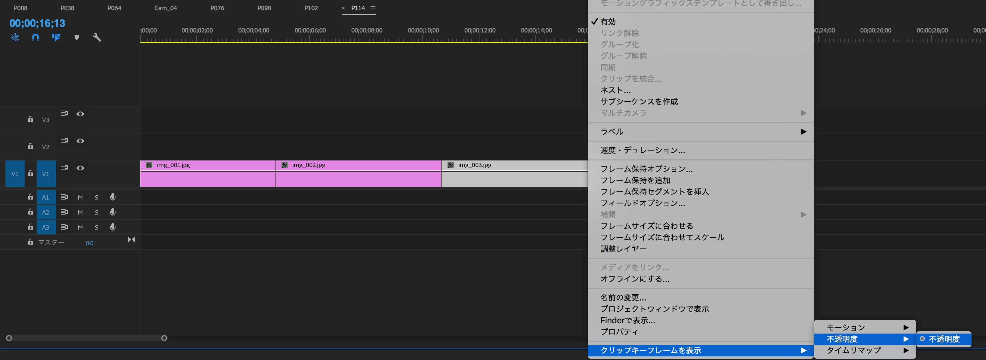 クリップキーフレームを非表示にする方法を教えて下さい