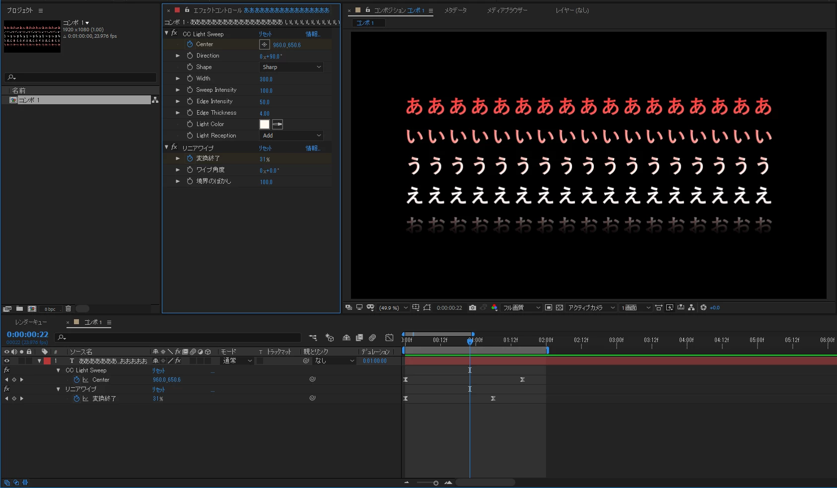 サンプル動画のようなテロップの出現方法のやり方
