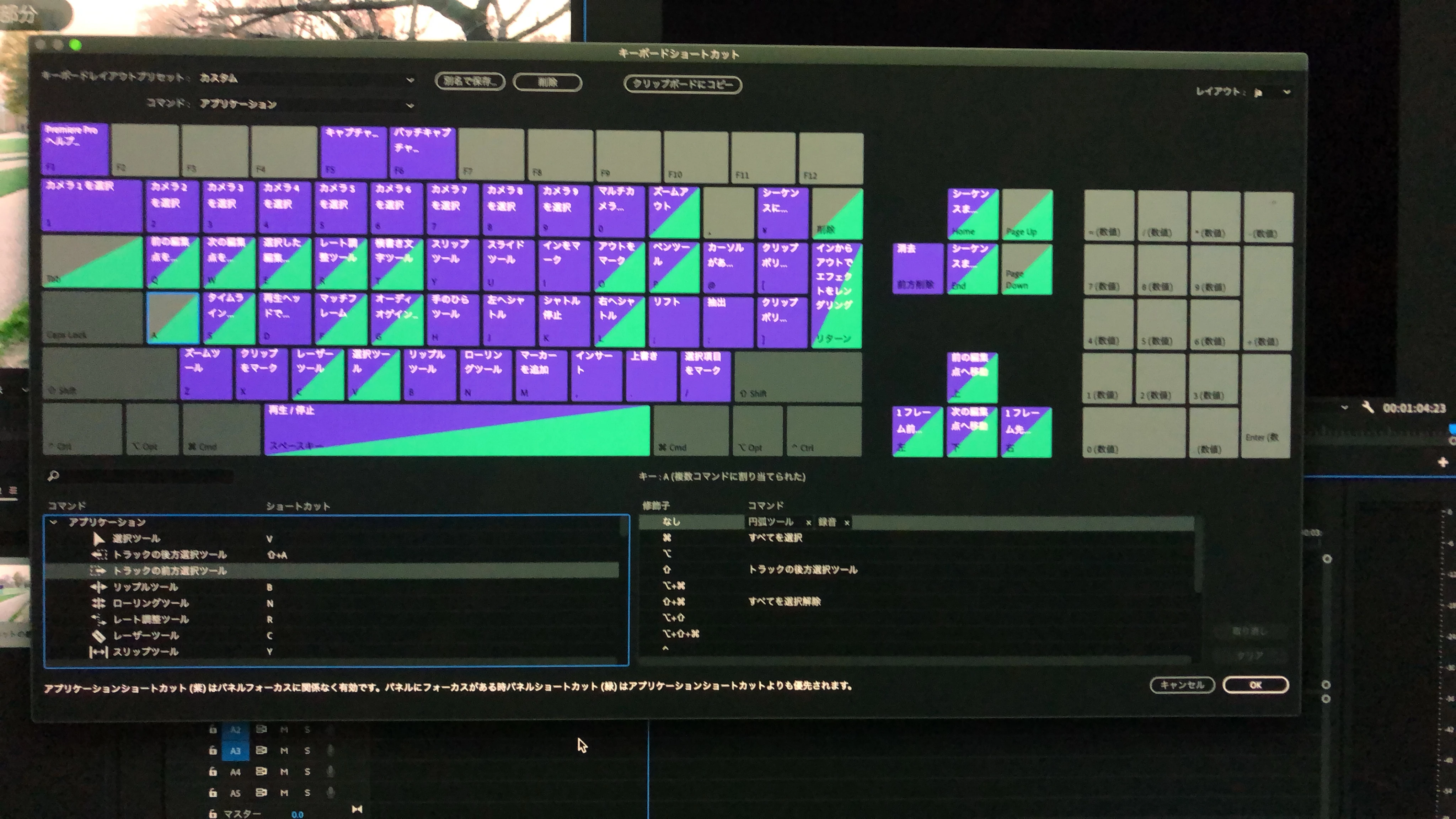 色々弄り、リップルトリミング等はできたのですが、コマンドCに設定したレーザーツールのみ編集中にCを押しても反応がなく(カット)ここの問題のみ解決できていない状況でございます。