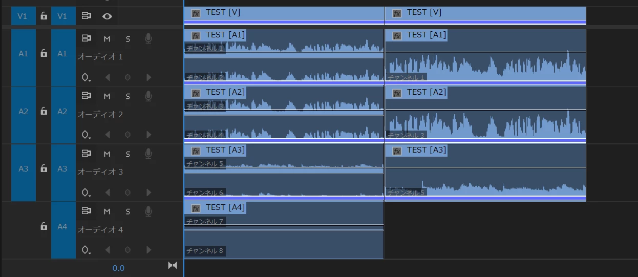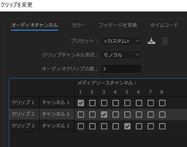 Premiere Proではこのようなマルチトラックの素材を扱う際に、一つの素材内で「ステレオ」と「モノラル」を混在できないので、「見た目が見やすくない」という面ではおっしゃる通りなのですが、現状のままの方がトラブルは少ないように思います。