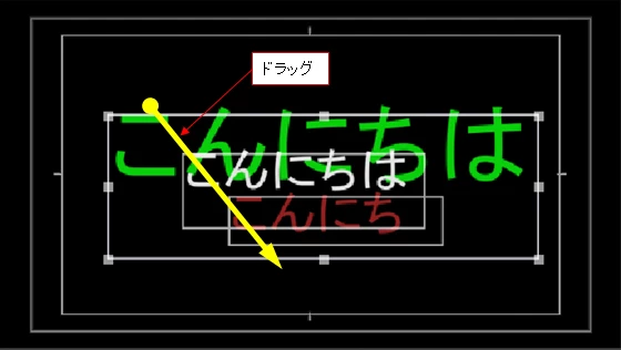 ②対象のテキストオブジェクトにかかるようにドラッグすると、枠が表示されます。