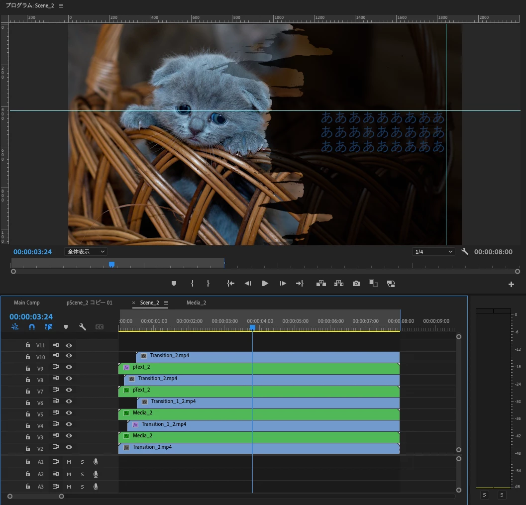 この状態で、V3のクリップをV4に移動すると、こちらの画像のようになります。