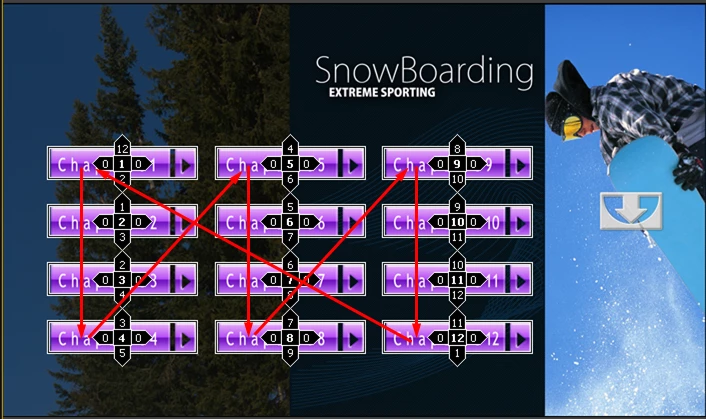 10行2列に並ぶボタンで、ルート順序を上下のみにする場合