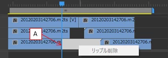 一例として、他のビデオトラックが詰まっている場合、「リップル削除」はグレーになっていて出来ません。