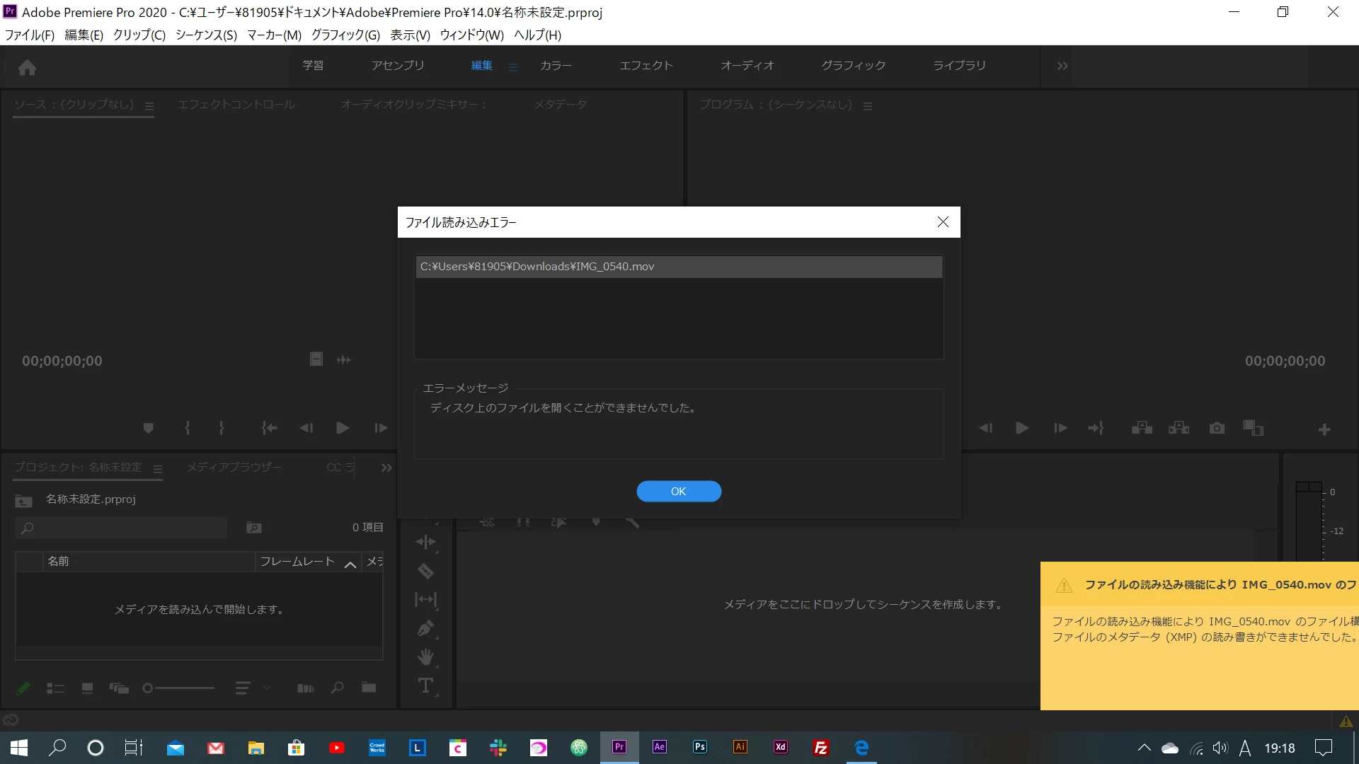 動画を読み込もうとしたら次のようなエラーが出ます。この原因と考えられことを教えてください。