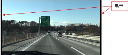 映像や写真は両端に黒帯が入って見えると思います(下図)。これはハイビジョンとDVワイドスクリーンの縦横比が厳密には若干異なるために発生します。後で映像または写真を拡大すれば、消えます。