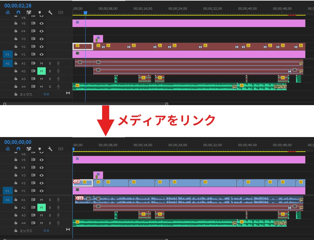 オフラインメディアになったビデオクリップをリンクしなおすと