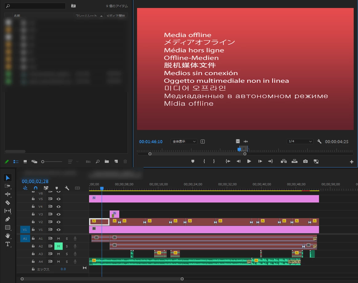 Premiereの再起動、キャッシュクリア、バージョンのグレードダウンなど行いましたが解決には至りませんでした。