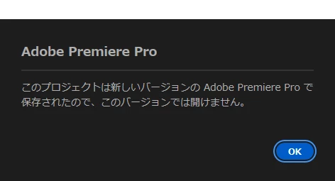 プロジェクトを開くと「このプロジェクトは新しいバージョンのAdobe Premiere Proで保存されたので、このバージョンでは開けません。」とメッセージが出て開けない