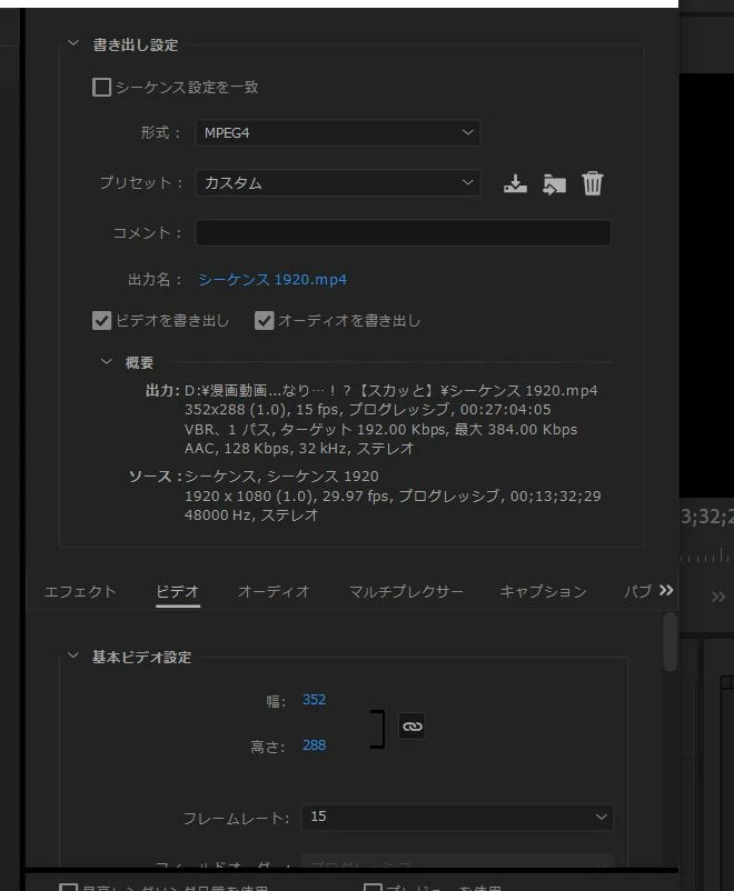 書き出しの設定がMP4から3GPPに勝手に変わってました