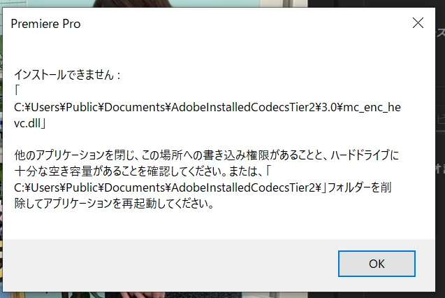 書き出し「インストールできません」
