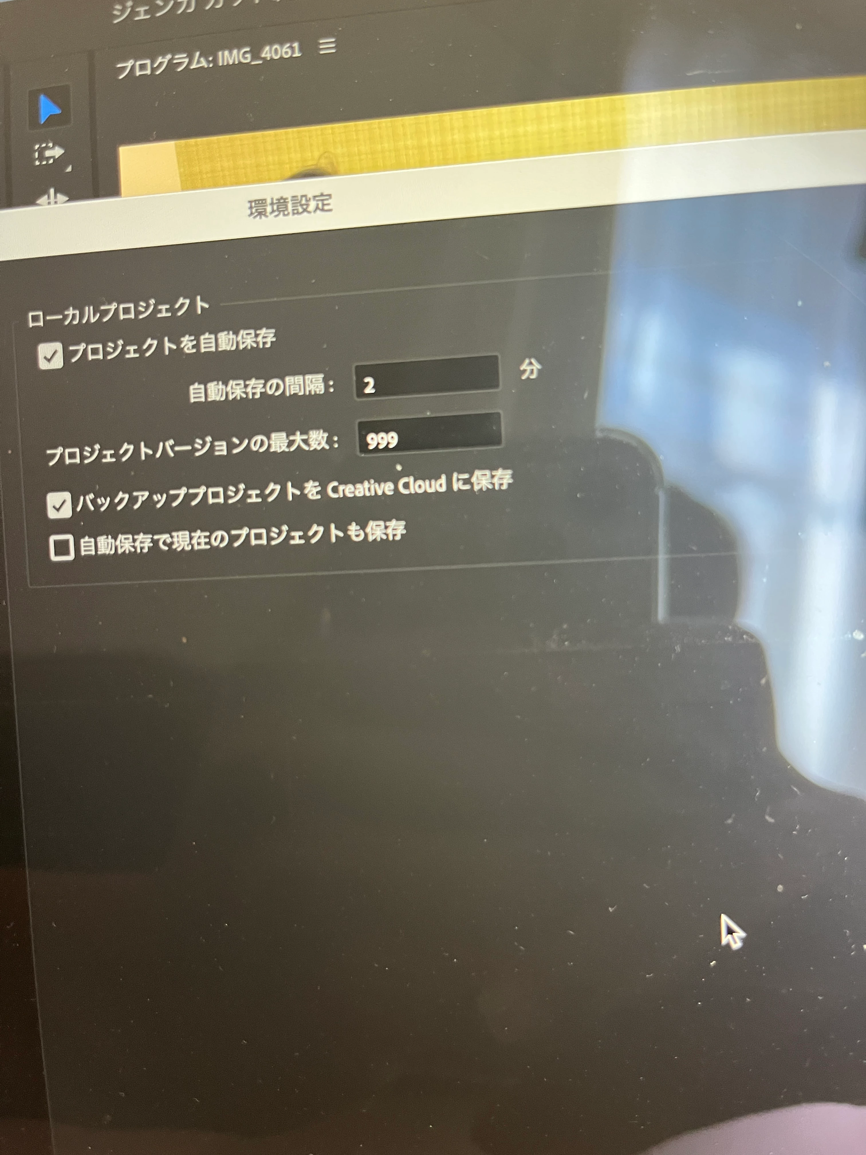 オートセーブの間隔ですが、私も正確な動作仕様は把握していないものの、Premiere Proのプロジェクトは開いているけれども操作をしていない間は、自動保存が働いていないように思います。