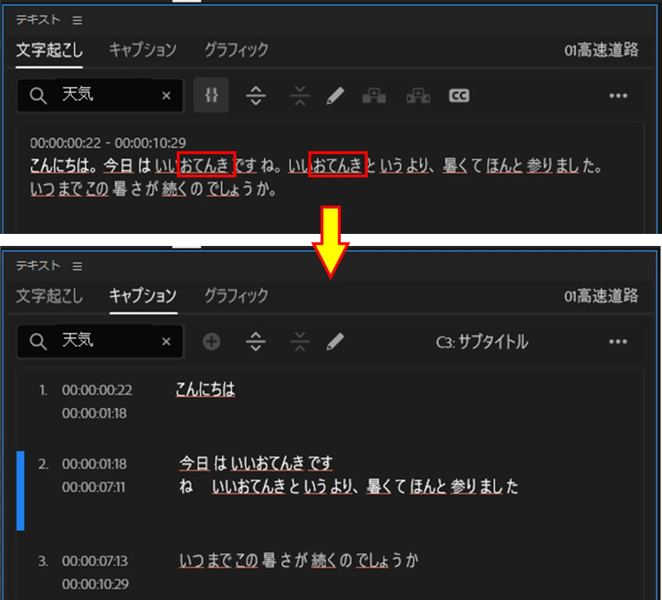 自動文字起こしの置き換え機能