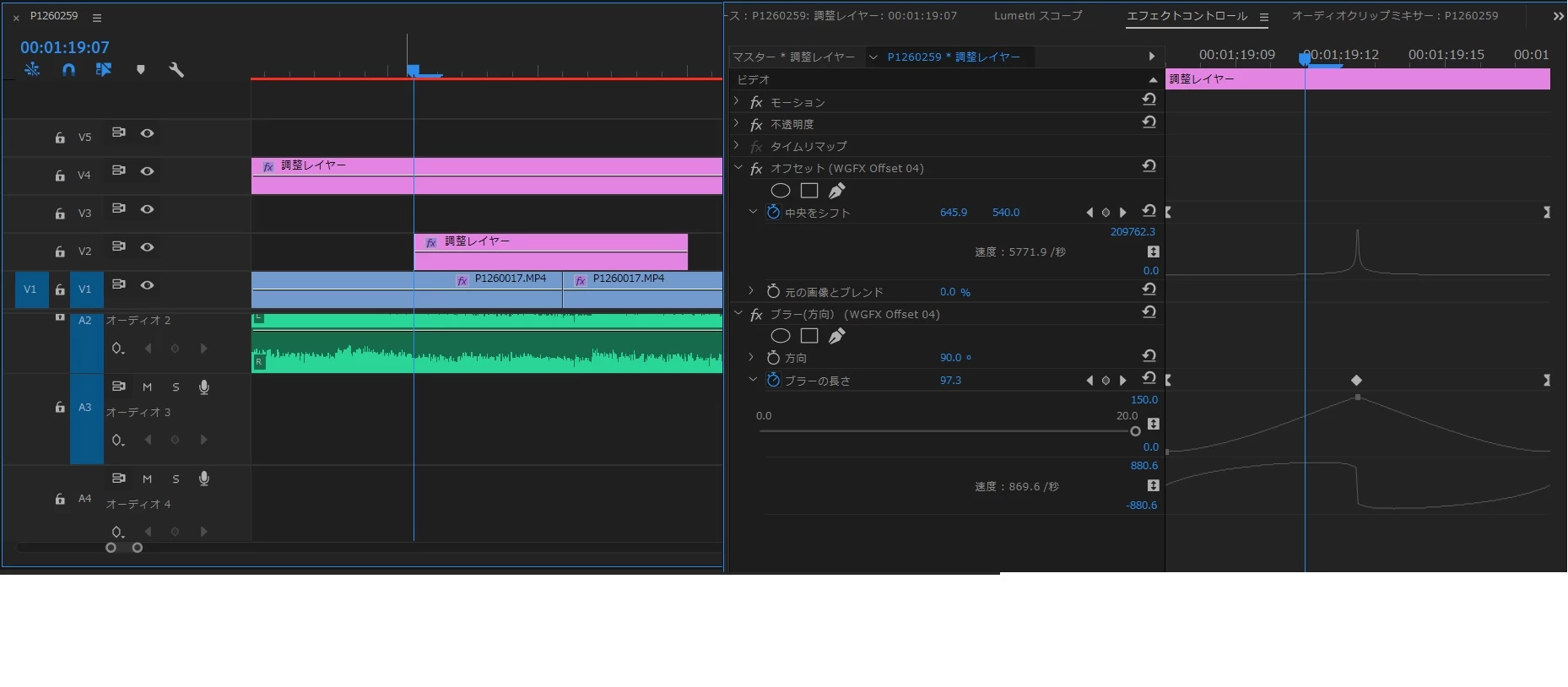 二つのクリップを調整レイヤーにかけたオフセットを用いてトランジション設定し、その上に別の調整レイヤーにてクロップエフェクトをかけたのですが、下にあるトランジションが映像に反映されません。クロップエフェクトを外すと問題なく反映されるのですが、二つの異なるエフェクトをかけた調整レイヤーは重ねることが出来ないのでしょうか?