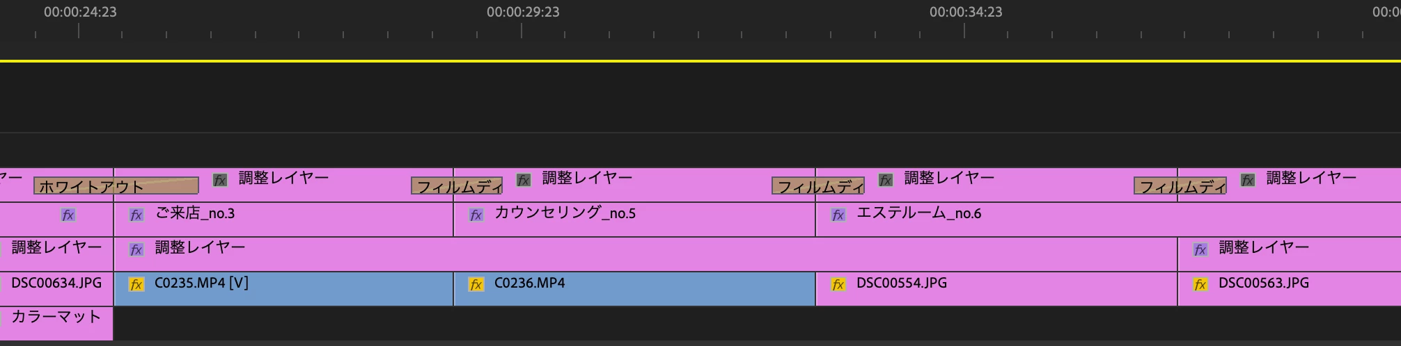 調整レイヤーでクリップ間に「フィルムディゾルブ」をかけたいのですが適用されません。