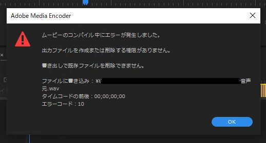 音声データ書き出しの「ムービーコンパイル中にエラー発生」について