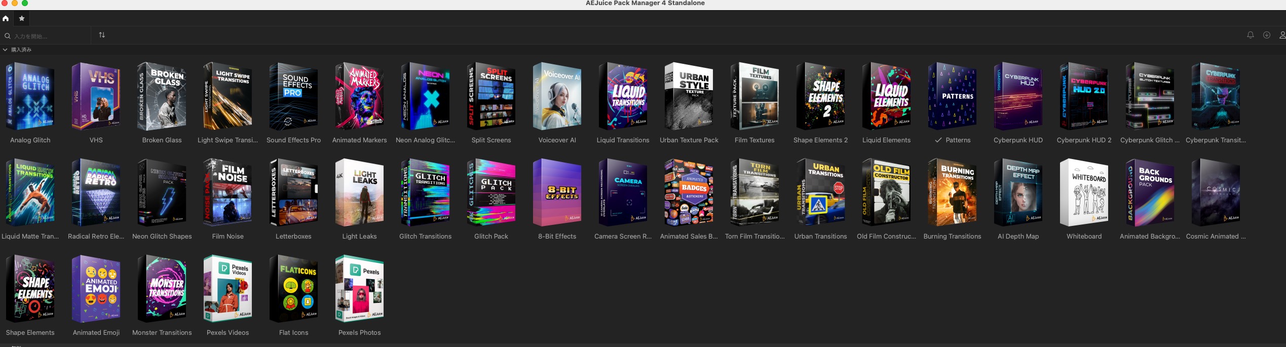 パッケージの幾つかは、After Effects対応のみがあると思います。