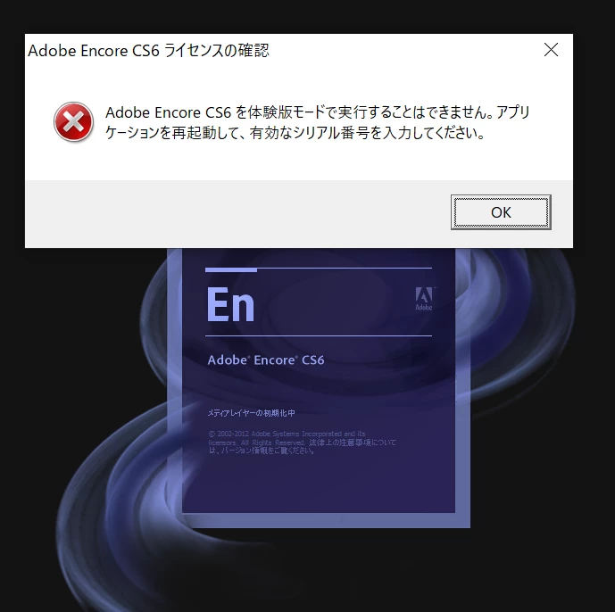 また、Premiere Pro CS6も含めてEncore CS6はパッケージ版なら問題ありませんが、Creative Cloudに付属のものは(プレミア2020と記載があることより、そのような気がします)非認定バージョンとなり削除するよう求められています(詳細は下記リンクの文書をご覧ください)。