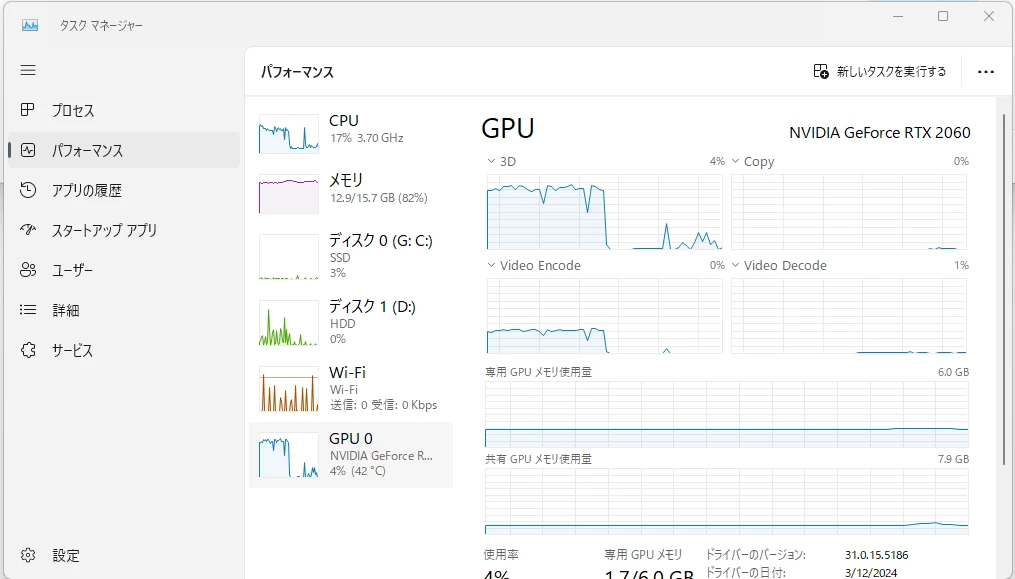 また、もし直近でNVIDIAのドライバーを入れ替えていたり、もしくは逆にNVIDIAのドライバが古いままであったりGameReadyドライバーが入っている場合には、前者の場合には少し前のバージョンのStudio(土)ラーバー、後者の場合は最新のStudioドライバーに変えてみるといったことも試す価値があるかもしれません。