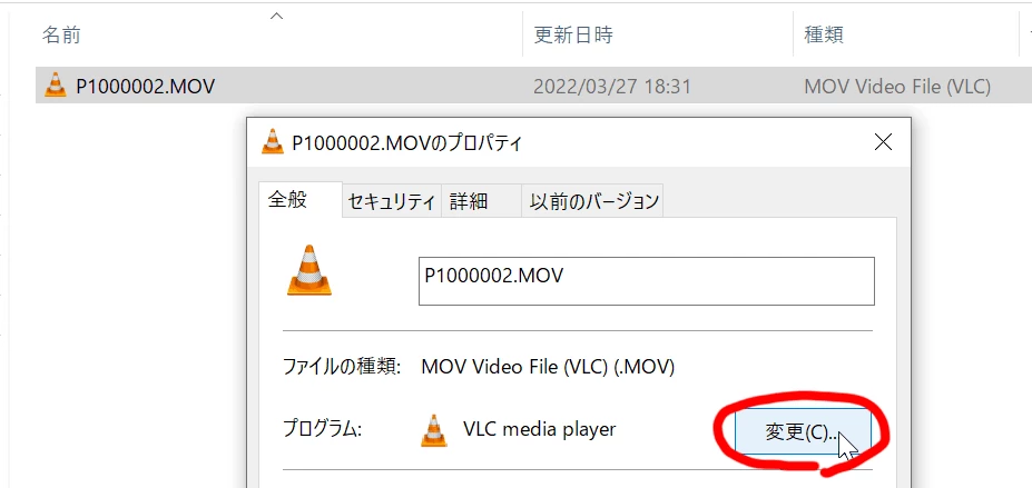 ※ファイルのプロパティから変更する方法もあります。