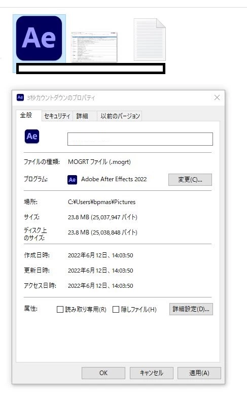 adobestockでダウンロードしたmogrtファイルを開くプログラムをAeに設定しています。するとアイコンが画像のようになるのですが、これを初期の状態に戻すにはどうすればいいでしょうか?