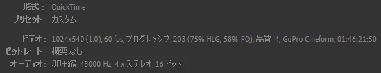エンコードは「QuickTime」プリセットは「Cineform Low」を使用しています。