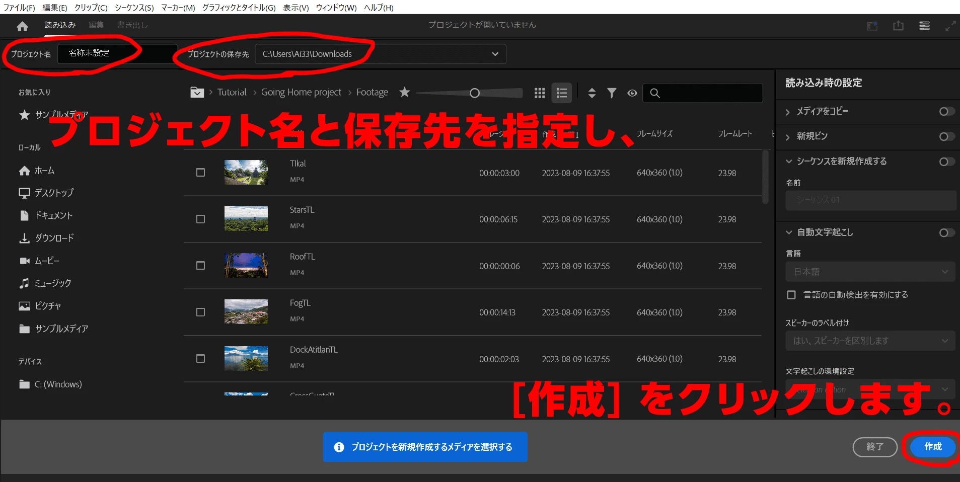 の出だしのところなのですが、他のチュートリアルでもそうなのですが、