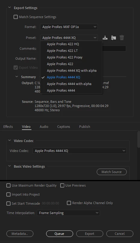 Apple ProRes 4444 XQ