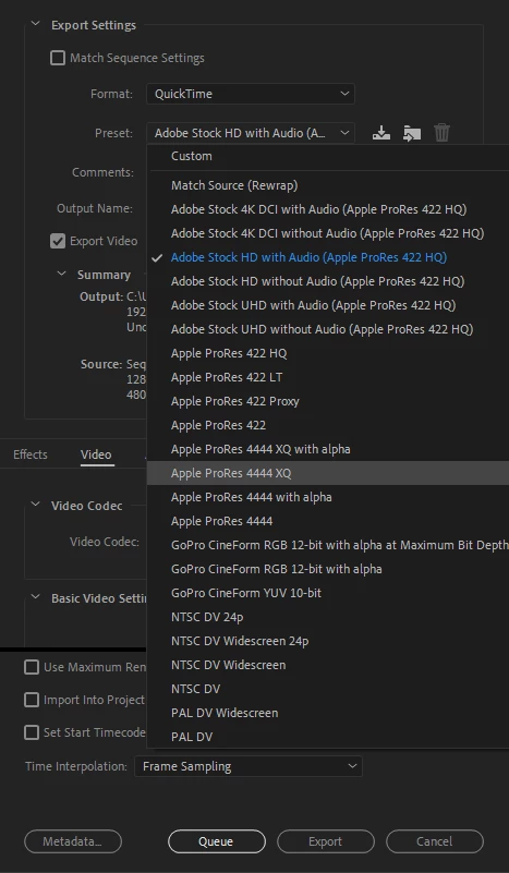 We have added Support for Apple Prores 4444 XQ Export for Adobe Premiere Pro and Adobe Media Encoder. It is available on MAC 10.15 and Windows builds.
